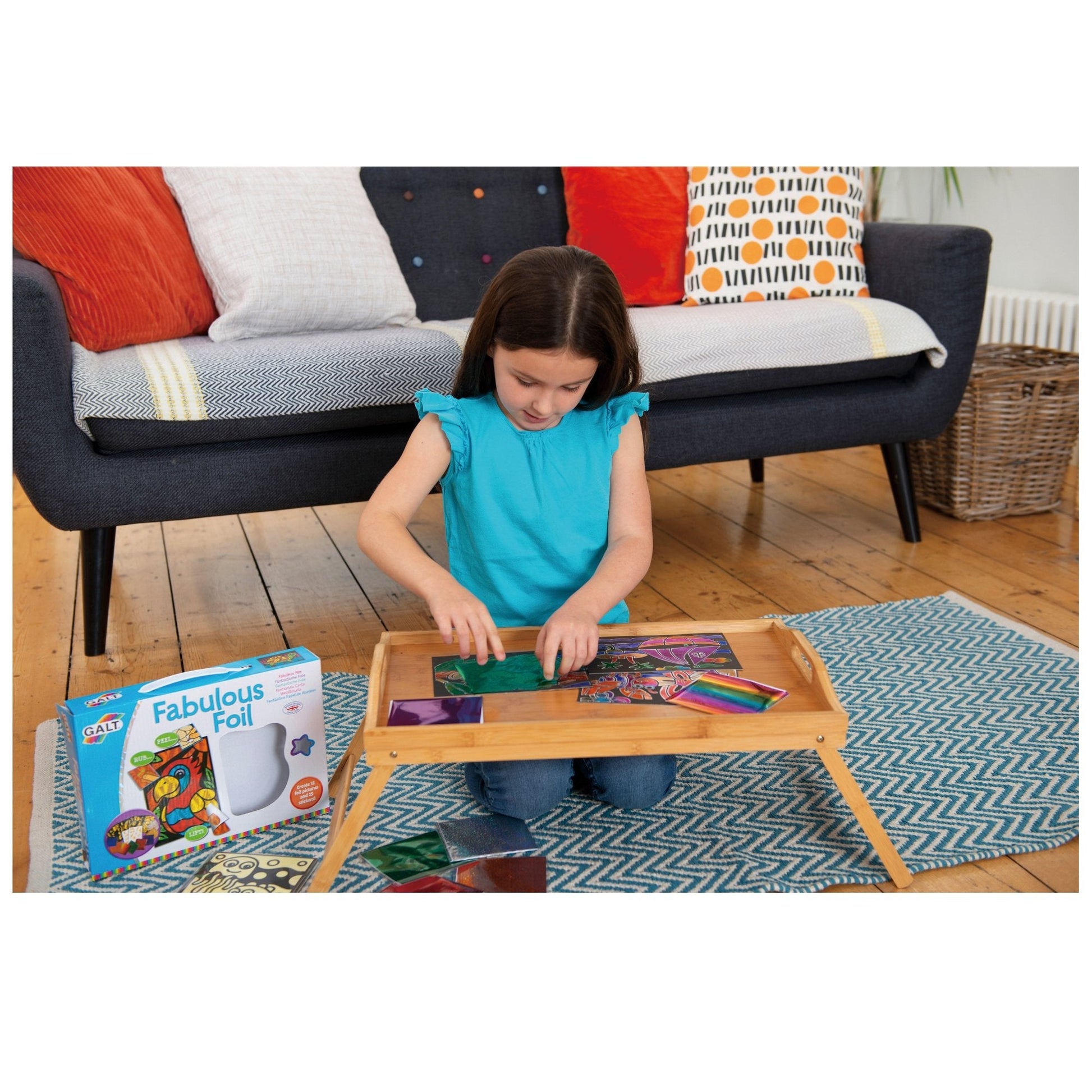 Create 12 foil pictures and 25 foil stickers with this exciting foil art kit. Simply peel off a section from your picture, place the foil over the sticky area, rub with your finger and lift up the foil sheet. The sparkly foil transfers to your picture or sticker with no glue required. Contents: 40 foil sheets in 8 assorted colours, 12 pictures, 2 sheets of 25 stickers, guide.