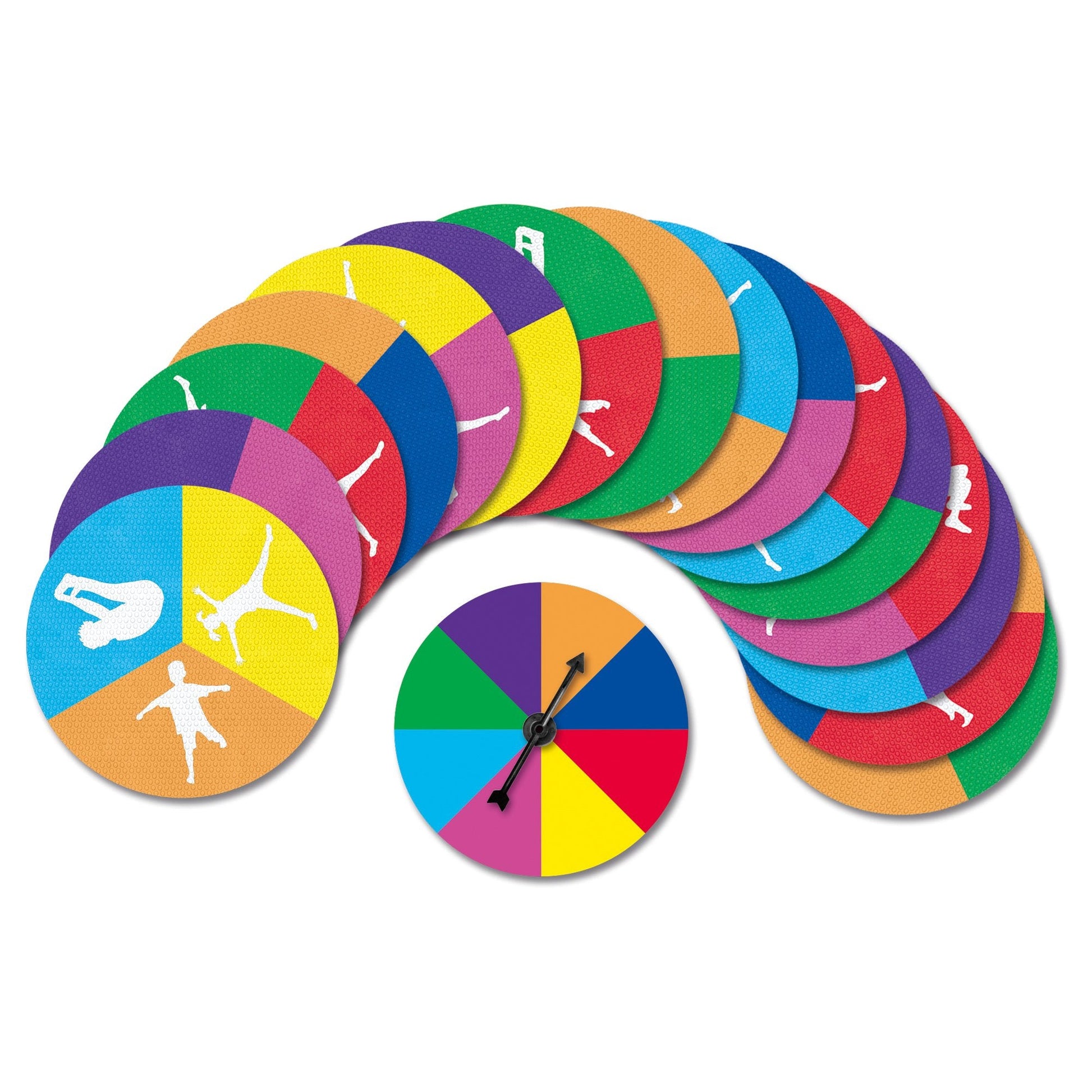 A fun 3-in-1 active game for 2 to 4 players. Turn any floor indoors or outdoors into your game board by laying out the coloured discs and using the spinner to decide your next move. Race to be the first person across the stepping stones, be the last person standing on the disappearing discs and be the first to finish on the racetrack Be more active by using the reverse side of the discs and perform tasks such as star jumps or running on the spot until your next turn. Develops movement skills, coordination and promotes physical activity whilst having fun